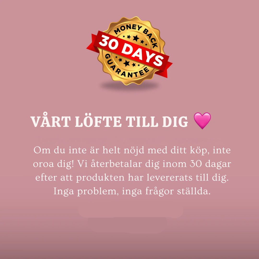 Vi erbjuder en 100% pengarna-tillbaka-garanti inom 30 dagar efter mottagandet av din beställning.
